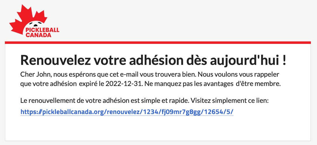 Mieux encore, la fonction d'envoi de courriels est disponible gratuitement, ce qui permet aux organisations d'économiser des coûts importants. Par exemple, l'utilisation d'une plateforme comme Mailchimp coûterait à Pickleball Canada entre 13 698,60 $ CAD (plan standard) et 17 551,32 $ CAD (plan premium) annuellement, selon les tarifs actuels de Mailchimp pour 75 001 à 100 000 contacts. Grâce à cet outil puissant et économique, les organisations peuvent facilement garder leurs membres connectés et à jour.