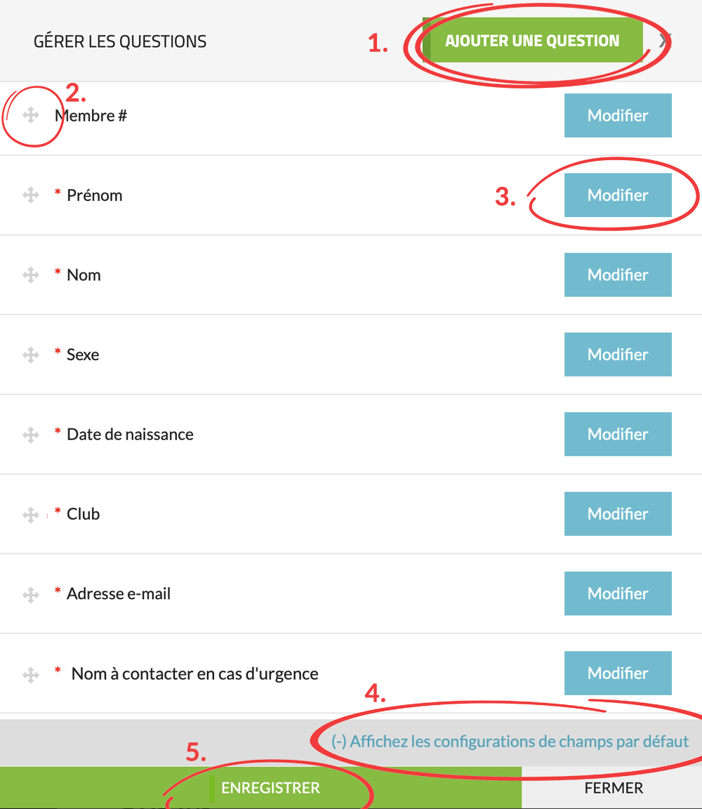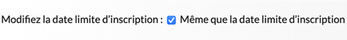Si vous souhaitez que les inscrits aient la possibilité de modifier leurs informations une fois l’inscription terminée. Le lien « paramètres » vous permet de sélectionner les champs modifiables et de fixer une date limite pour la saisie des modifications, le cas échéant. |