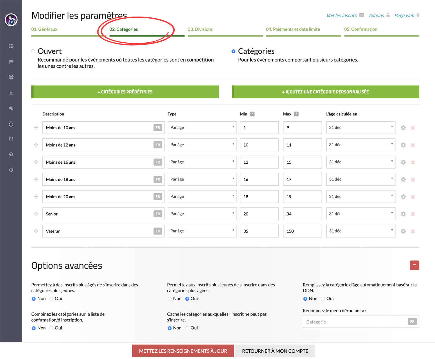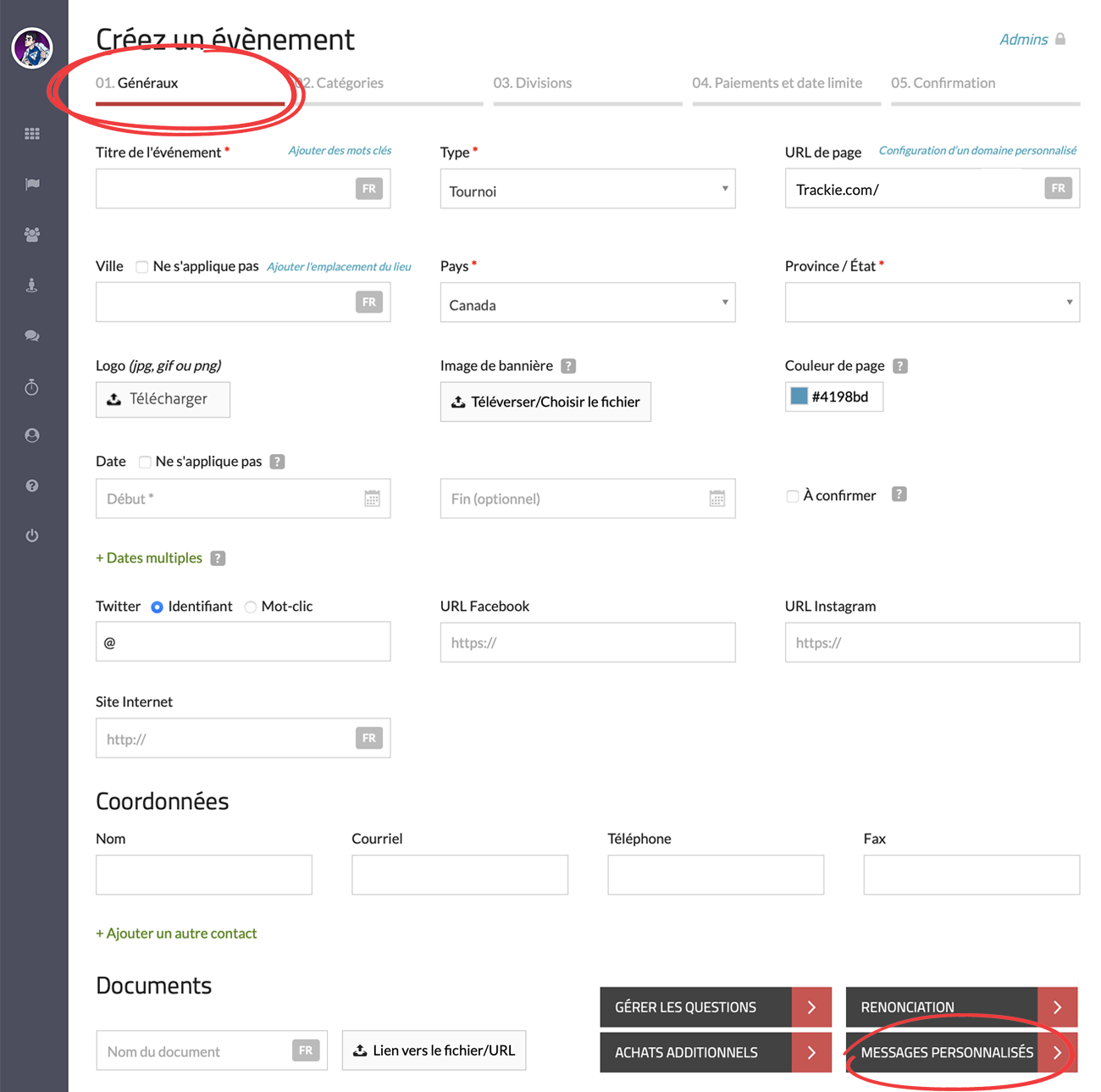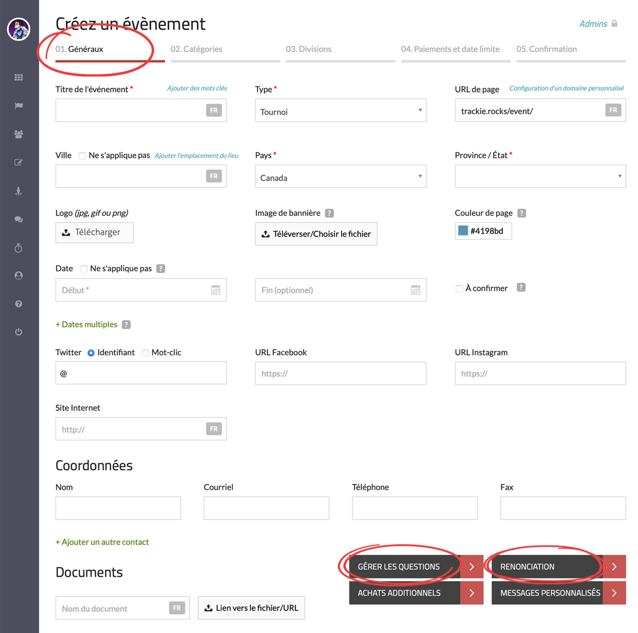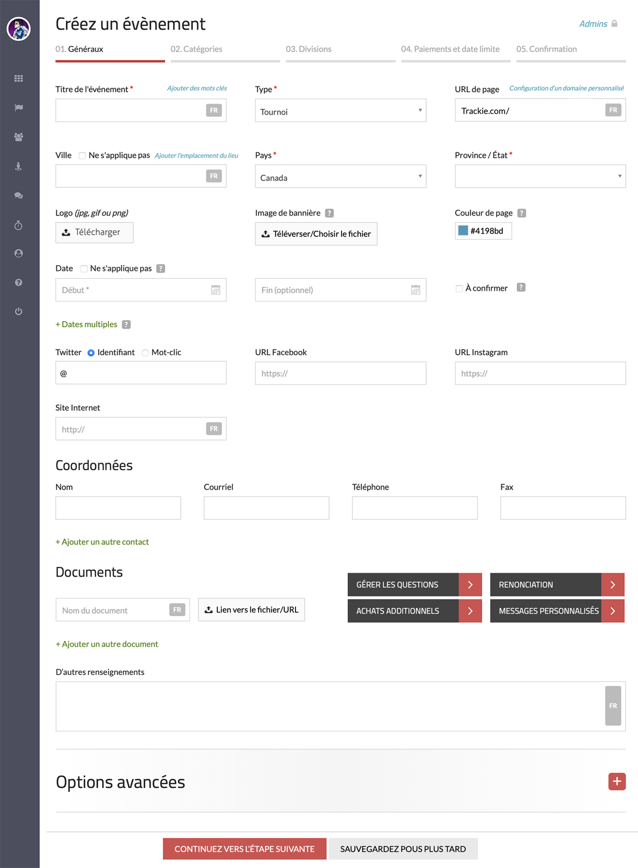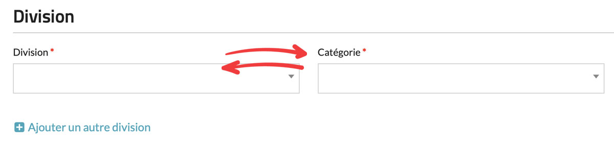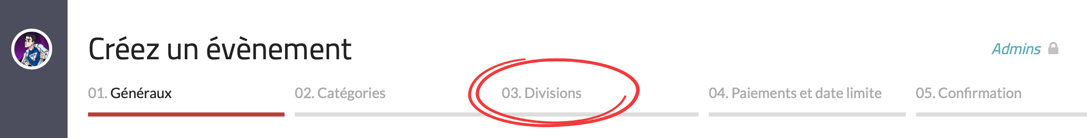 Chaque type a une fonctionnalité identique, à l’exception du type « Produits/Billets », qui élimine les rubriques « 02. Catégories » et « 03. Division ». Ces différents types sont principalement disponibles pour vous aider à organiser vos événements sur notre calendrier et dans votre espace « Mes événements ».