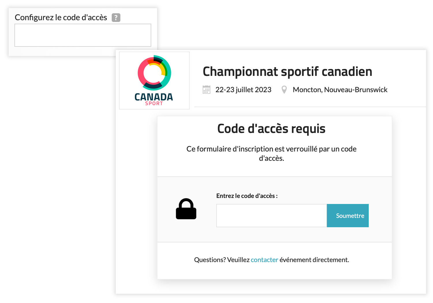 Ce paramètre vous permet de protéger votre formulaire d’inscription par un mot de passe, ce qui signifie que sans le code d’accès, les inscrits ne pourront pas s’inscrire à votre événement.