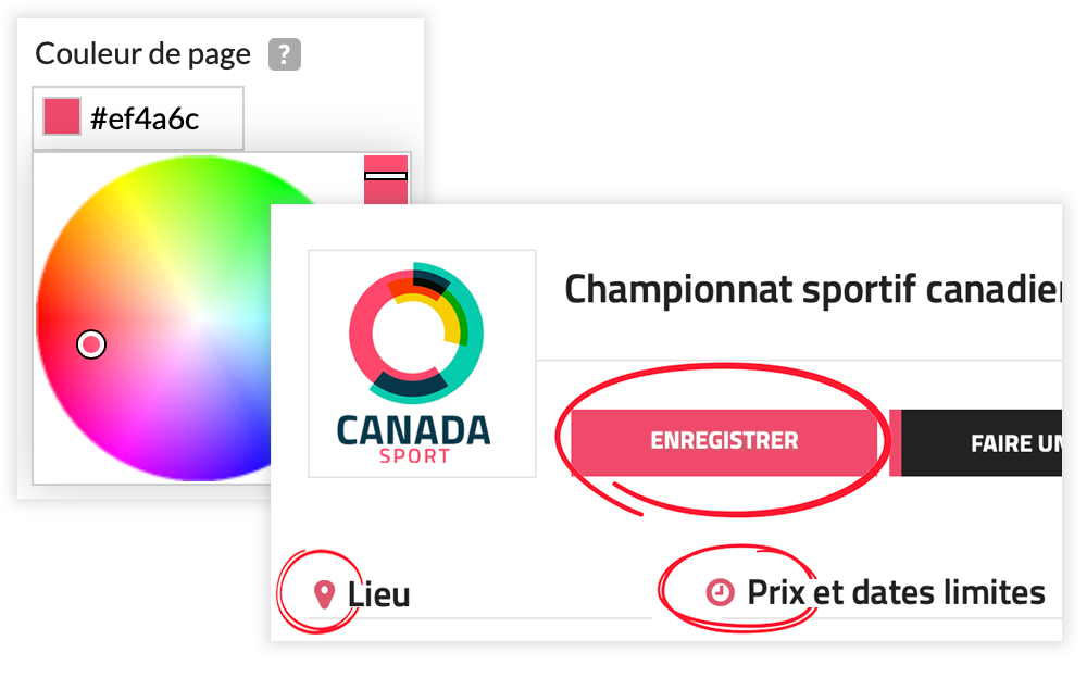Vous pouvez télécharger votre propre logo, qui sera mis en évidence sur la page Web de votre événement, sur les formulaires d’inscription et à d’autres endroits pertinents.