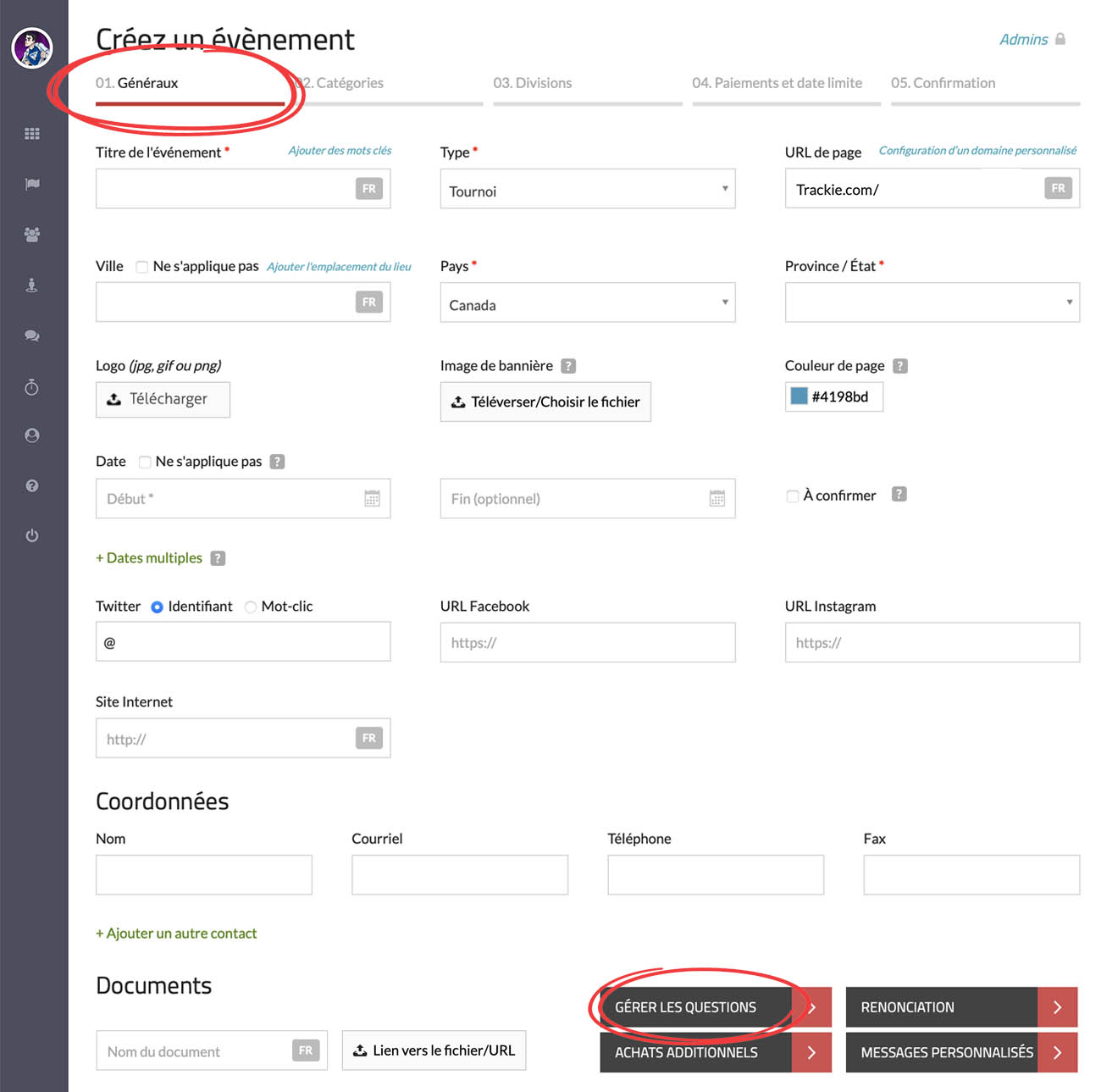 Vous avez la possibilité d’activer la validation de l’adhésion. Pour accéder à ce paramètre, vous devez d’abord créer un formulaire d’inscription. Une fois créé, dans vos paramètres, naviguez jusqu’à la section « Étape 1 : Généraux » et cliquez sur le bouton « Gérer les questions ».