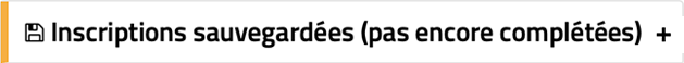 Si vous avez des inscriptions sauvegardées, mais incomplètes, vous pouvez y accéder dans cette section. Pour en savoir plus sur la fonction « Enregistrer et compléter plus tard », cliquez ici. |