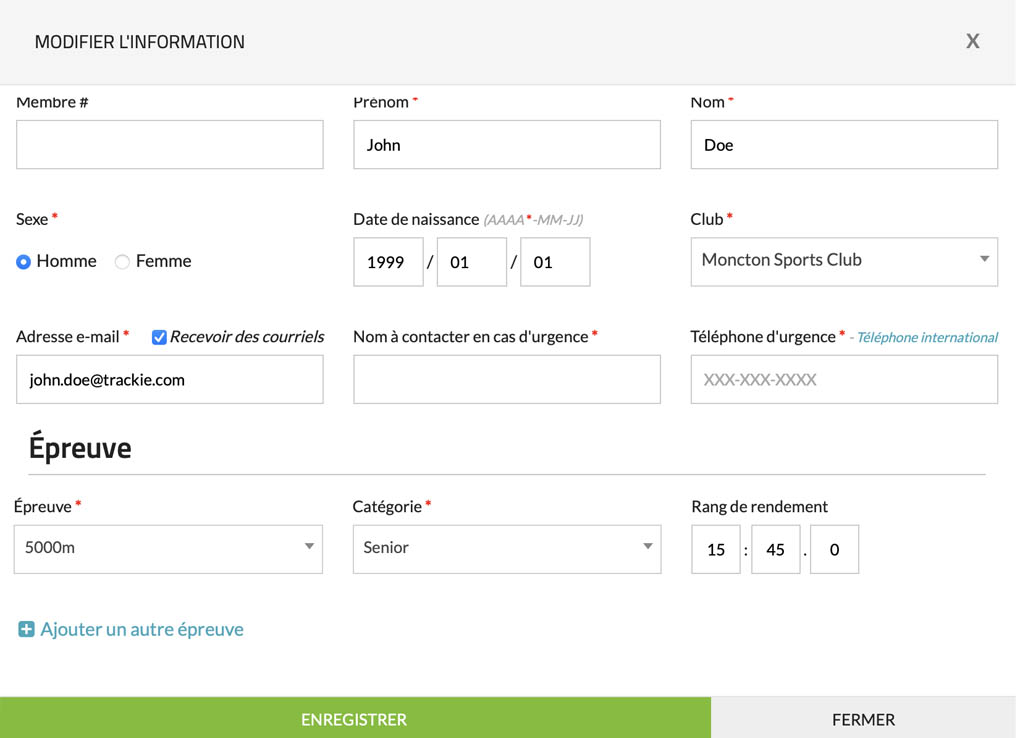 WEn cliquant sur ce lien, vous pourrez modifier vos informations. Veuillez noter que pour certains événements et clubs, la modification des informations peut être désactivée ou soumise à une date limite. Si vous ne parvenez pas à modifier vos informations, il est recommandé de contacter directement l’événement ou le club concerné.