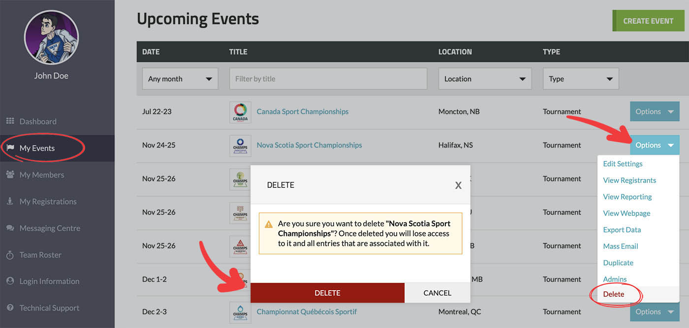 4. To confirm the deletion of the page, click the big red "DELETE" button.