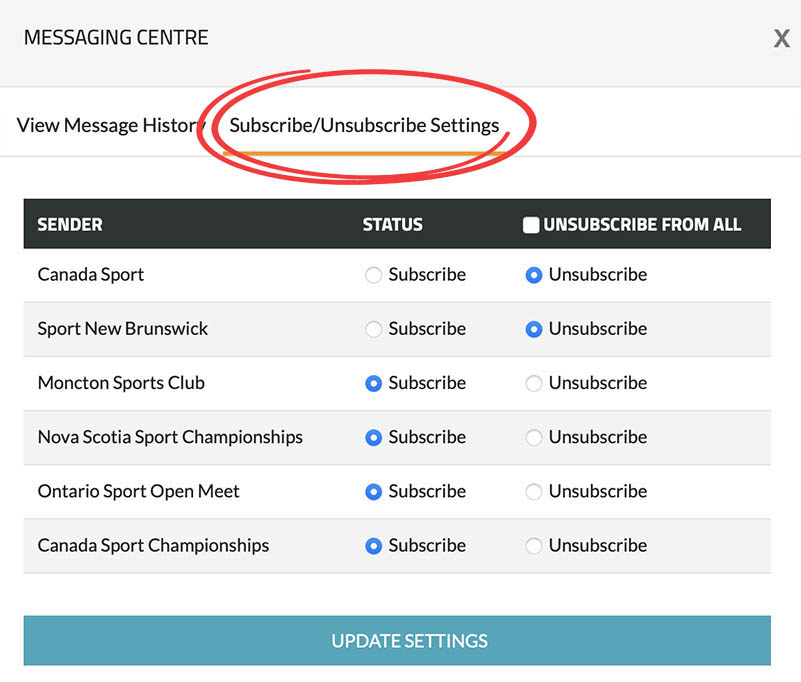 To manage your subscription preferences, you can access the "Subscribe/Unsubscribe Settings" tab by clicking on it.