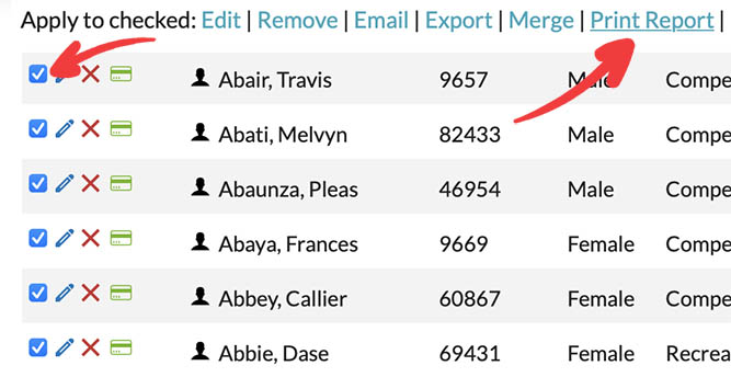 Please note that the system also allows you to create a "Print Report" for a subset of your registrants by following these steps: