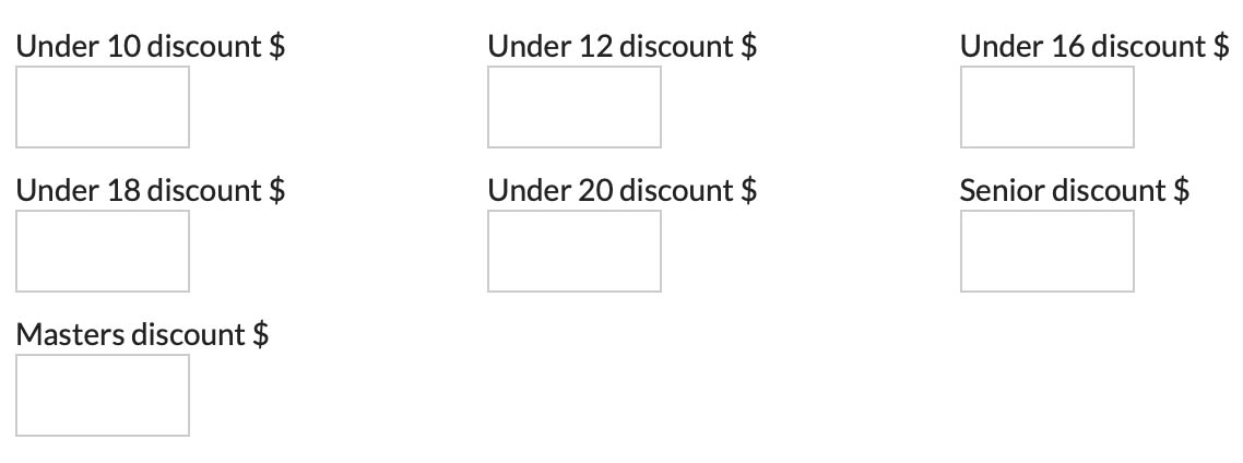 With this setting, you can specify which types of registration costs will be discounted. For example, if you have additional purchases set up during registration, such as a T-Shirt purchase, and you only want the discount to apply to the registration fees and not the T-Shirt purchase. |