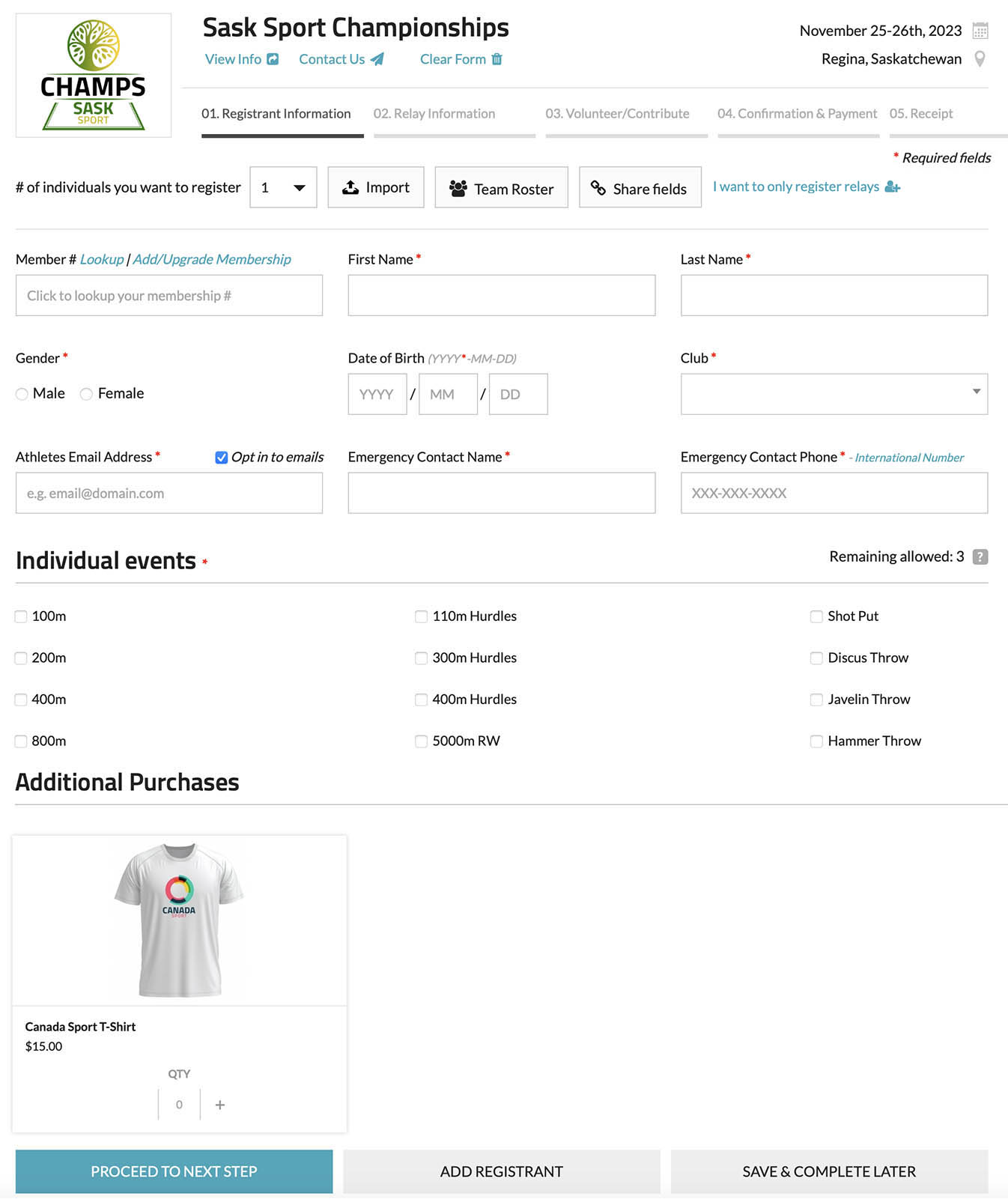 ImportantPlease ensure that you complete your registration before the registration deadline. When utilizing the "Save & Complete Later" feature, your entries are not considered complete until you finalize the registration process.
