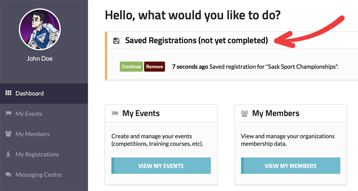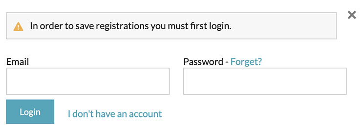 When you are ready to resume working on your registration data, simply log in to your account, and you will find your saved registrations at the top of your dashboard.